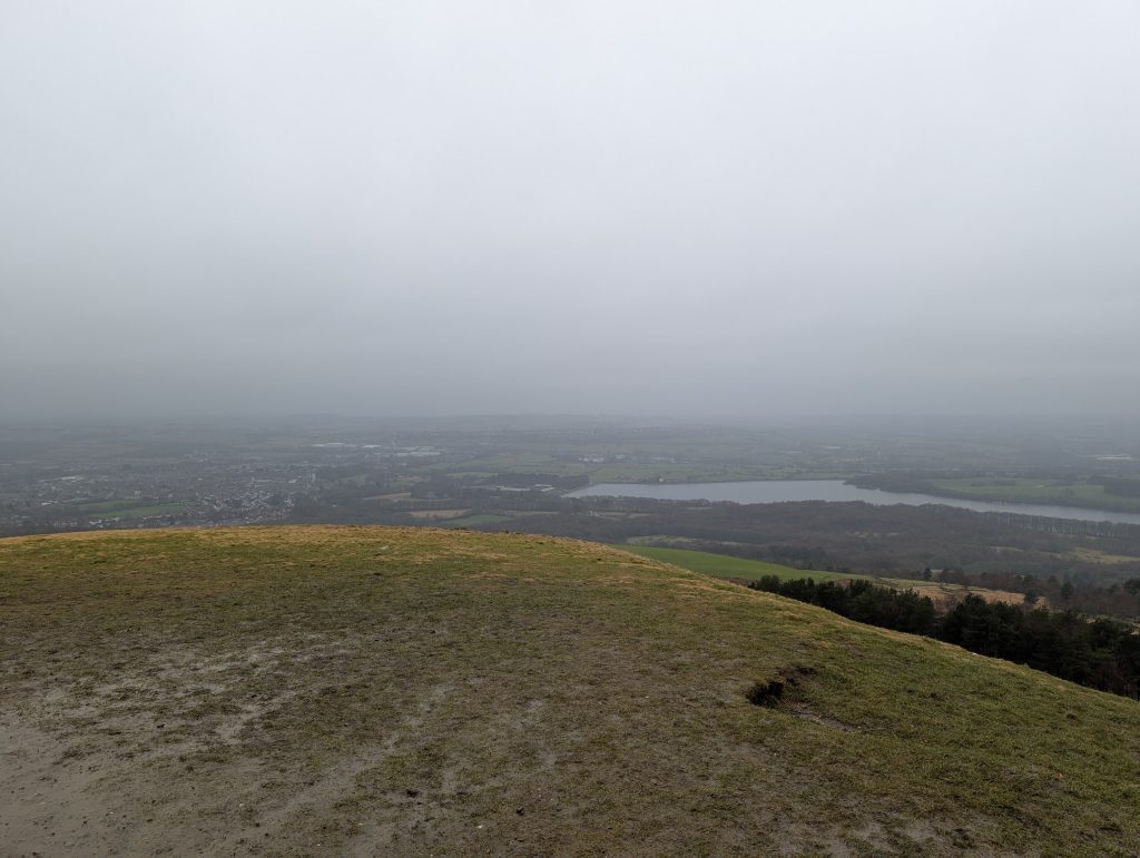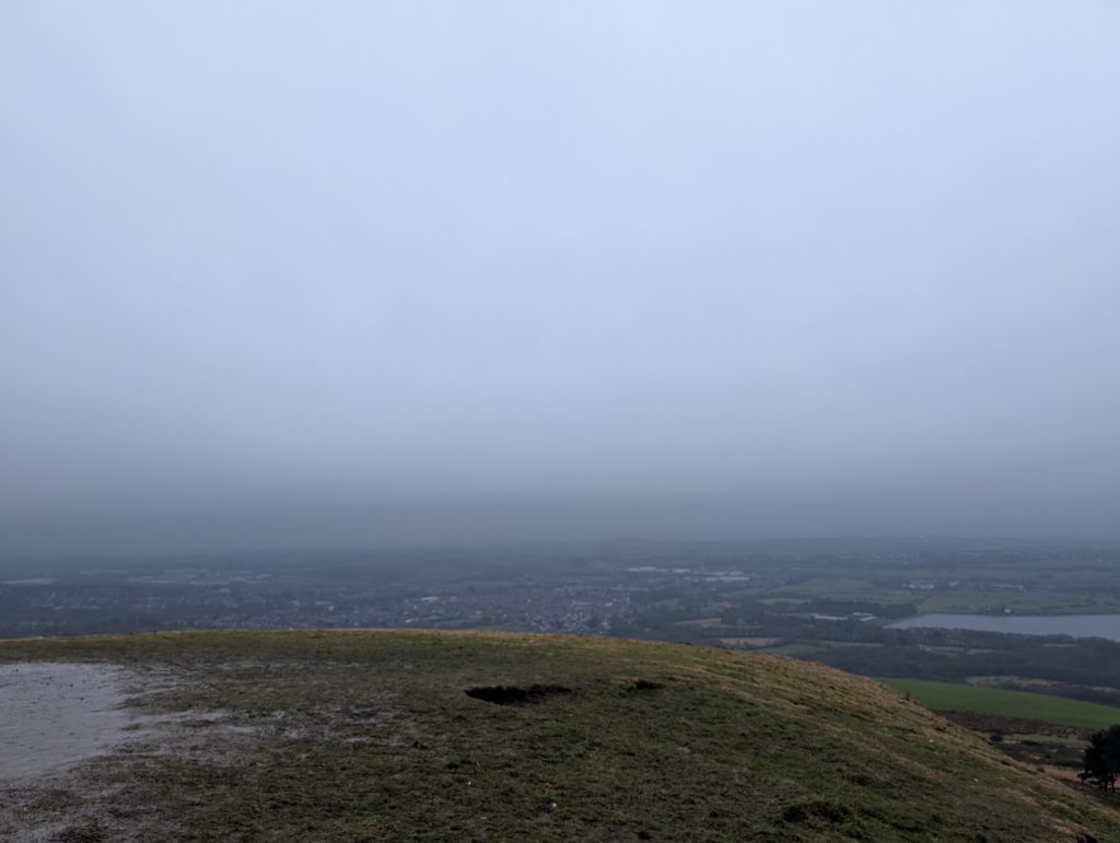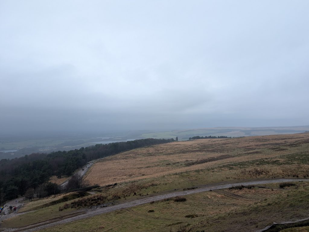 Once you get there, the tower isn’t flashy, but it’s a proper marker that you’ve made it to the top. On a clear day, the views stretch out across Bolton, and you can even spot Bolton Wanderers’ football ground or see towards Manchester in the distance. On my walk, though, it was January, grey, and misty, so most of that was hidden. Honestly, that didn’t bother me — there’s something quite peaceful about standing up there in the cloud, feeling the wind, and just taking a minute to catch your breath.